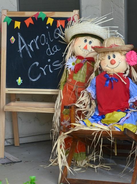 Na entrada da sua varanda você pode colocar um espantalho ou um casal de espantalhos e uma plaquinha, com uma mensagem, com o nome da festa ou com palavras de motivação e alegria.