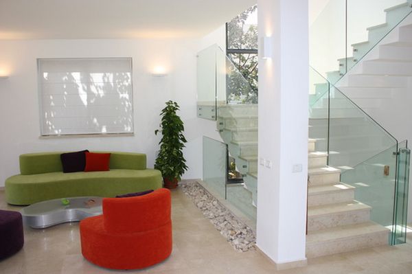 Além da funcionalidade, as escadas com corrimão de vidro podem ter efeito escultórico e desdobrar-se até mesmo em peças de apoio. E uma grande vantagem do corrimão de vidro é que a transparência do vidro não diminui visualmente o seu ambiente, e se você possuir uma escada perto de uma grande janela, por exemplo, ou de um espaço com vidro fixado, permitindo a entrada dos raios solares, você pode acrescentar um corrimão de vidro para aproveitar a luminosidade proveniente do exterior da sua casa.