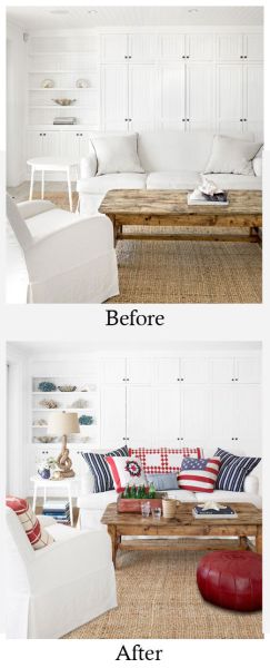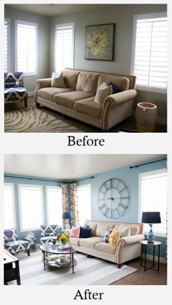Outra maneira fácil e algumas vezes mais barata de renovar o décor de sua sala de estar é trocando o estofamento das poltronas, sofás ou cadeiras. E até mesmo pintando as cadeiras e outras peças de madeiras com cores mais alegres e divertidas. E outros itens mais baratos que os móveis, como cortinas, tapetes e almofadas, por exemplo, quando trocados resultam em novos visuais, sem a necessidade de gastar muito dinheiro comprando estofados ou móveis novos e, consequentemente mais caros.