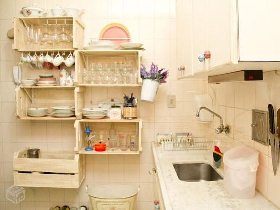 A decoração de cozinha com prateleiras é também funcional (Foto: pinterest.com)