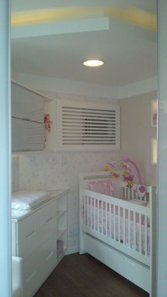Se o quarto é muito pequeno, mas muito pequeno mesmo, você pode montar um quarto de bebê, com o berço e uma cômoda posicionados lateralmente e em diagonal, caso este seja o formato do espaço, que não precisa ser necessariamente um cômodo, pode ser um espaço entre alguns cômodos. E se for preciso, opte por móveis planejados e encomende um móvel com o formato que melhor se encaixe em seu espaço.