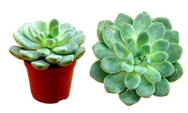 A echeveria é uma suculenta, planta que armazena água nas folhas e caules, que tem o formato parecido com o de uma rosa. É muito usada para fazer arranjos em vasos com outras suculentas e cactos. Deve ser regada apenas uma vez por semana, pois a umidade pode apodrecer suas raízes. Não tolera muito sol. Nome cientifico: Echeveria SP.