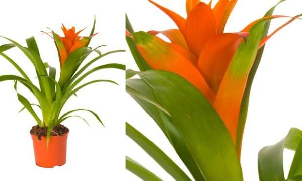 A bromélia, com inflorescência em tons vermelhos contrastando com o verde escuro das folhas, é uma das flores mais decorativas para ambientes internos. O sol direto queima suas folhas, por isso deve receber apenas claridade indireta. É plantada em substrato para epífitas. Deve ser regada a cada dois dias, limpando-se o seu centro para evitar proliferação de mosquitos. Nome cientifico: Guzmania ligulata.