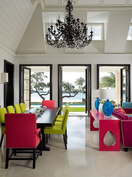 A modernidade pode estar presente em sua sala de jantar de diversas maneiras. E uma destas maneiras é incorporando cores fortes e intensas ao seu ambiente. E estas cores não precisam aparecer sozinhas ou tímidas, pelo contrário, você pode fazer até mesmo um mix de cores vibrantes em sua sala de jantar, para modernizar totalmente o ambiente, deixando-o também bem divertido e diferenciado.