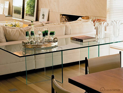 E você pode utilizar um aparador de vidro até mesmo como divisória de sua cozinha com a sala e com o balcão para a sua cozinha. E se você acrescentar um banco de madeira ou uma peça grande, que se acomode debaixo do aparador de vidro você ainda deixa o seu espaço com visual mais moderno e diferenciado. Mas independente de como o seu aparador está sendo utilizado, você deve acomodar sobre ele peças que tenha algo em comum com todo o décor do ambiente.