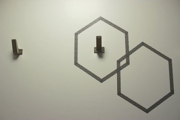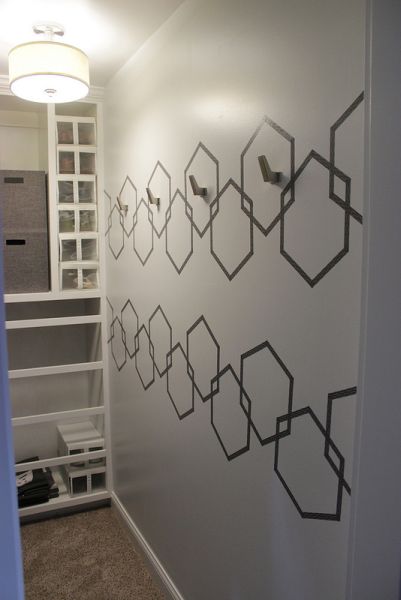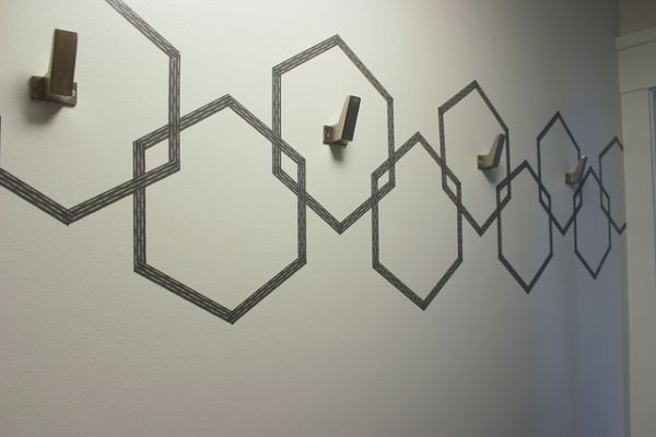 Agora, continue fixando os pedaços de fita adesiva em sua parede até chegar ao final da parede e montando a decoração desejada.