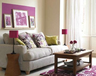 Decoração de salas de estar lilás e roxo
