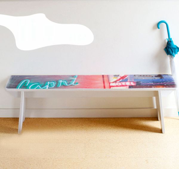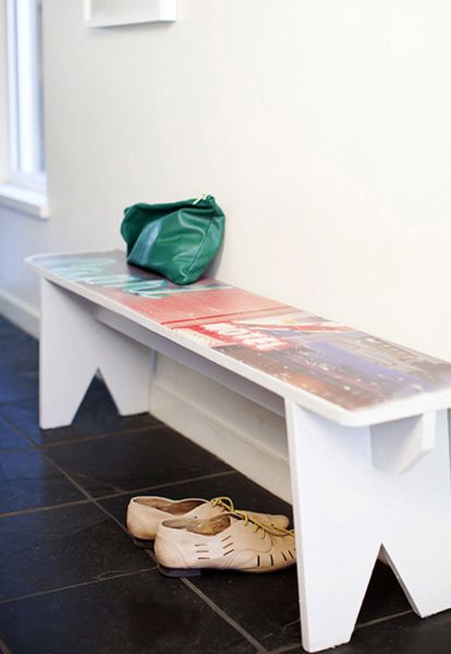 Banco com transferência de foto para decoração de ambientes é lindo e decora de forma primorosa (Foto: poppytalk.com)