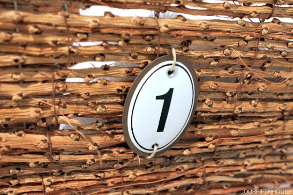 Em seguida, se você quiser, acomode a tag escolhida em sua caixa de vime, com o auxílio de um pedaço de fio rústico de sua preferência.