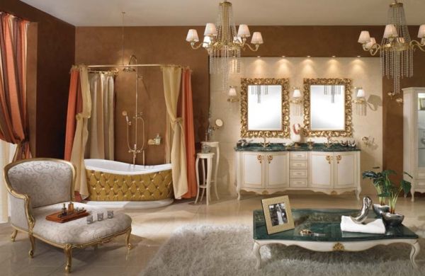 Que tal ter um espaço luxuoso para relaxar e descansar e ainda ter ao alcance das mãos todos os produtos de beleza que você precisa para ficar ainda mais linda enquanto descansa? É isso o que você pode ter se você possuir espaço em sua casa e muito dinheiro. Poltronas do século passado, itens de ouro e banheira glamorosa garantem um toque especial neste caso.