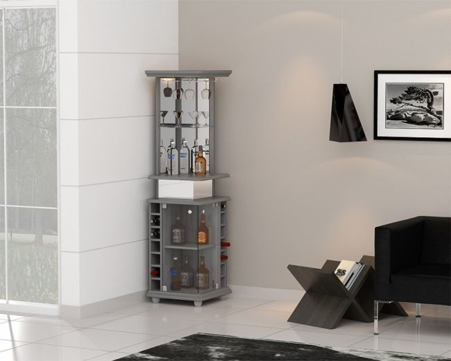 Os móveis pra bar de canto são perfeitos para quem tem espaço pequeno na sala e quer aproveitar todos os cantinhos.