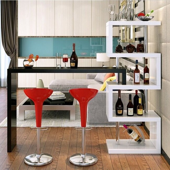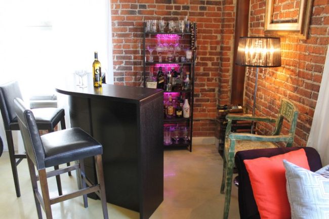 A sua sala pequena pede um barzinho também bem pequeno, apenas para acomodar as suas poucas bebidas preferidas e alguns copos e taças.