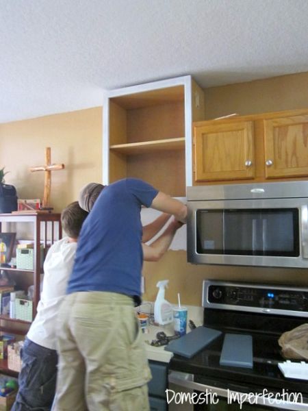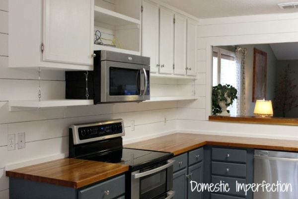 Créditos:http://www.domesticimperfection.com/2013/08/how-to-raise-your-cabinets-add-a-shelf/ e http://www.domesticimperfection.com/2013/01/open-kitchen-shelving/.