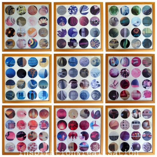 Agora, para finalizar a sua peça, basta terminar de colar os formatos nos fundos de todos os quadros, deixar secar, remontar os seus quadros e pendurar os quadros na parede. E está pronto!