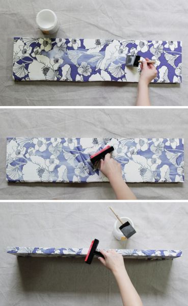 Créditos:http://modpodgerocksblog.com/2013/09/how-to-decoupage-fabric-onto-shelves.html.