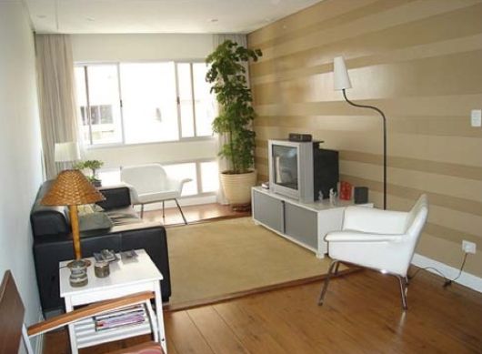 Outro recurso para ampliar as paredes e, consequente todo o ambiente é utilizar papéis de parede ou pintar a parede com listras horizontais, pois assim como ocorre na moda, as listras horizontais alargarão o cômodo e deixarão todo o ambiente visualmente mais amplo.