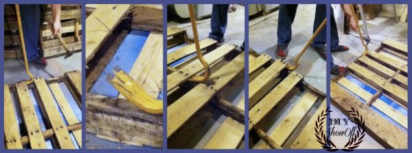 Comece retirando duas partes da pallet, com o auxílio do pé de cabra.