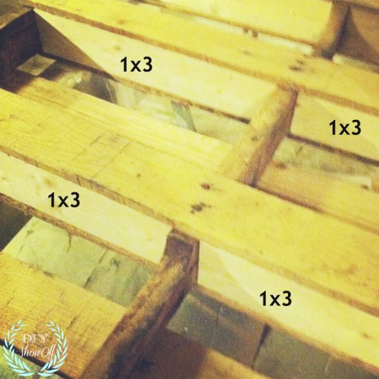 Em seguida, serre alguns pedaços de madeira ou as tábuas da pallet, para ficarem com o mesmo tamanho da parte de baixo das divisórias da pallet quando esta estiver de pé, e fixe estes pedaços de madeira, para formar as divisões e prateleiras em sua peça.