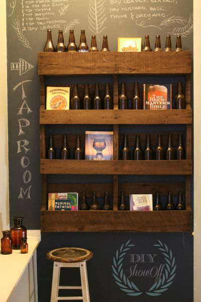 Créditos:http://diyshowoff.com/2013/03/28/diy-pallet-shelf-and-organizing-home-brew-supplies/.