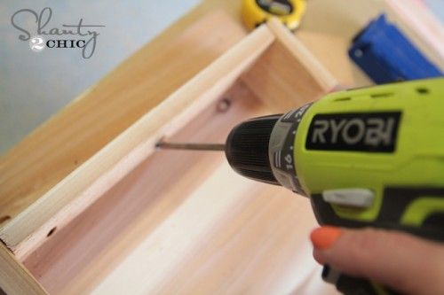 Logo após, fixe um pedaço de madeira ao outro, com o auxílio de parafusos e de uma ferramenta específica para fixar os parafusos.