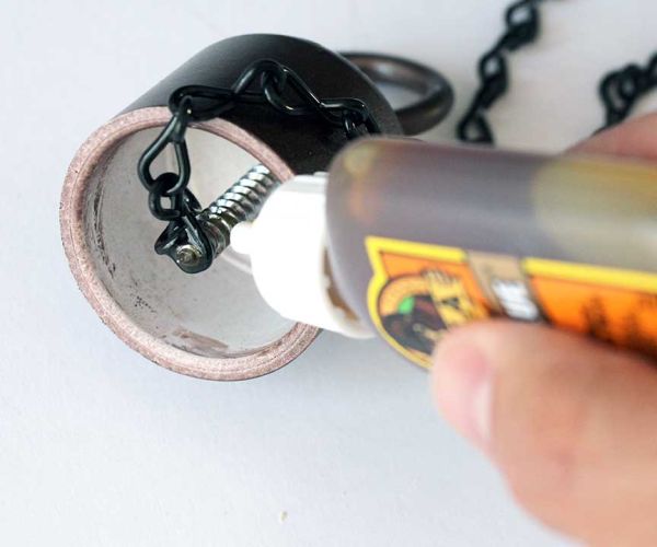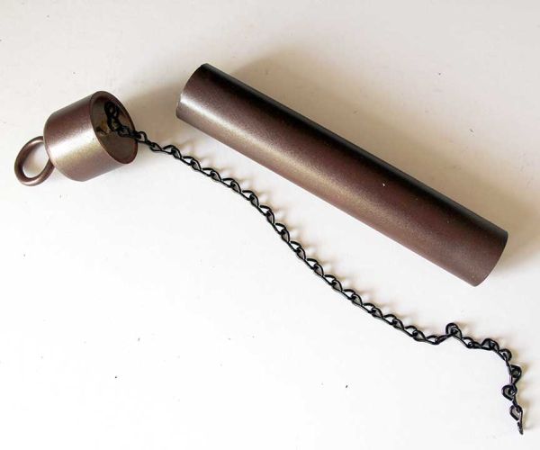 Em seguida, passe o cano de PVC pela corrente e fixe na tampa.
