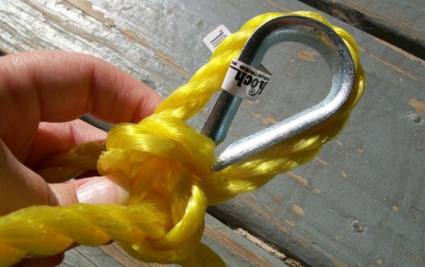 Em seguida, para finalizar a sua peça, basta passar as outras pontas da corda pelos ganchos de metal que já estão fixados, fazendo nós bem firmes. E está pronto!