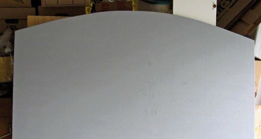 Comece serrando a parte de cima de sua cabeceira com o modelo de sua preferência. Aqui foi feito um movimento sinuoso, mas você também pode deixar a parte de cima reta, caso prefira. E fure, com o auxílio da furadeira, onde você quer que os botões fiquem posicionados.