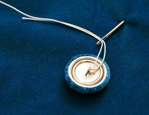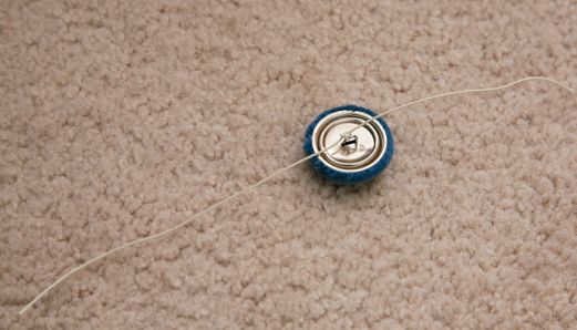 Logo após, corte um pedaço de fio encerado fino e amarre no pé do botão. Faça isso em todos os botões.