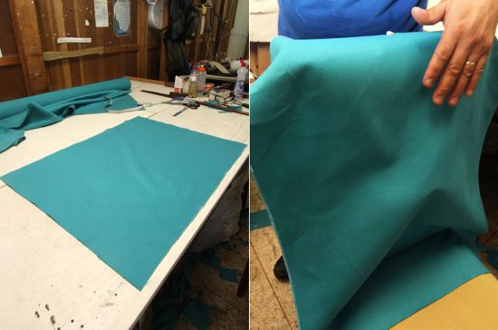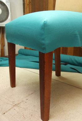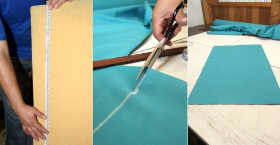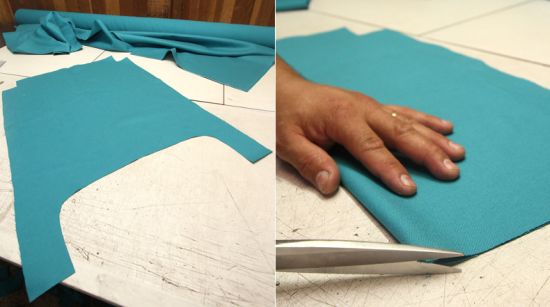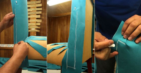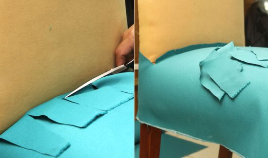 Logo após, repita o mesmo processo que você fez com o assento, marcando e cortando os excessos de tecido.