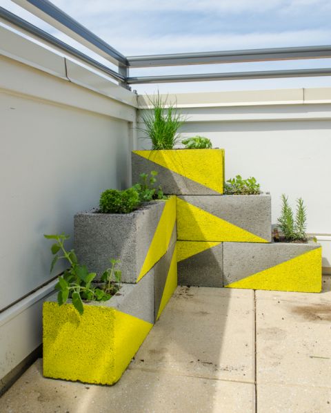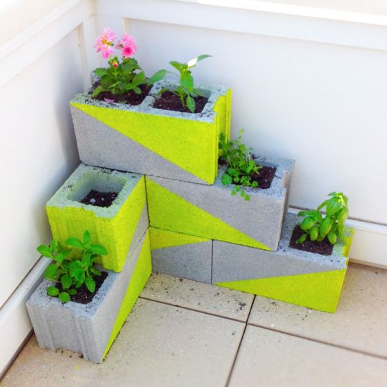 Você pode fazer uma linda decoração com blocos de concreto para repaginar o visual da área externa de sua casa, além de conseguir vasinhos customizados para as suas plantinhas.