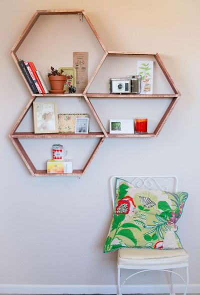 Créditos:http://abeautifulmess.com/2012/06/diy-honeycomb-shelves.html.