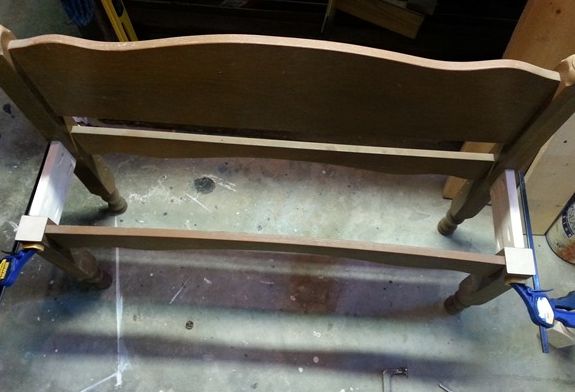 Comece serrando a parte superior dos pés da cama, caso seja necessário, para que as duas partes fiquem com a mesma altura, para o assento do seu banco.