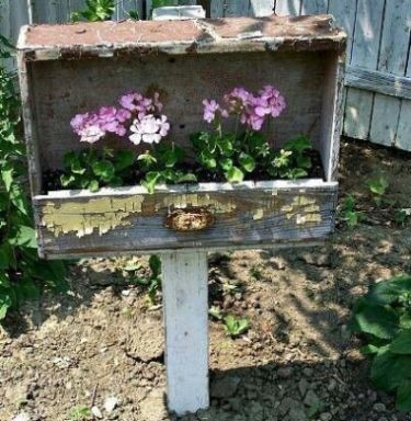 Outra maneira de utilizar as suas gavetas velhas sem a necessidade de customizá-las é colocando terra dentro e plantando algumas plantinhas em seu jardim. E você pode deixar as gavetas no chão ou sobre alguma peça, caso não queira colocar nenhum suporte, ou incorporar algum suporte em sua gaveta para que ela fique suspensa em seu jardim.