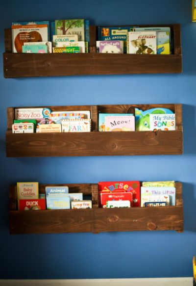 Créditos:http://meandmadeline.blogspot.com.br/2012/08/wood-pallet-bookshelf-mini-tutorial.html.
