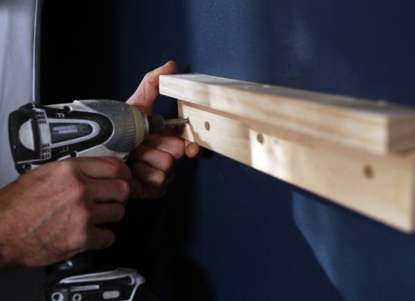 Agora, faça um suporte de madeira, contendo uma parte em cima que consiga acomodar a parte da mesa que irá virar um criado-mudo. Depois fixe este suporte, com o auxilio dos parafusos e de uma ferramenta específica para fixar os parafusos, na parede ao lado de sua cama.