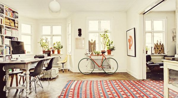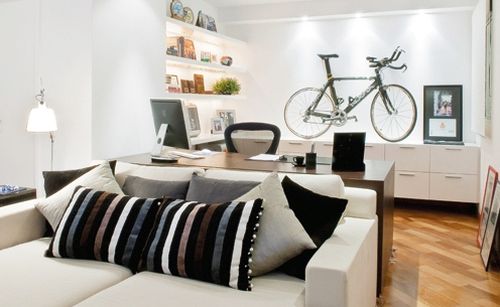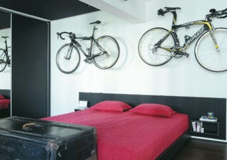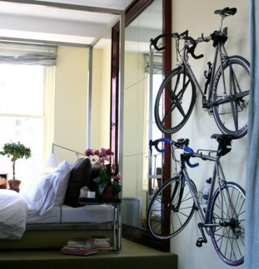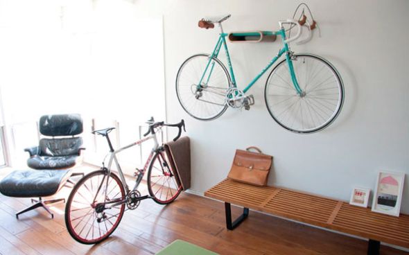 A maneira mais fácil de incorporar uma bicicleta à decoração de seu ambiente é somente posicioná-la em um canto, com a vantagem de quando você quiser usá-la basta empurrá-la até a porta. Mas neste caso é preciso espaço para que você não fique esbarrando na bike a todo o momento, nem deixá-la em um local que atrapalhe a passagem.
