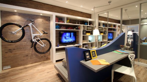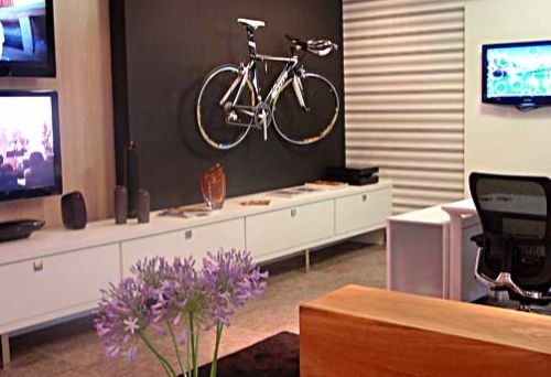 E como já foi mencionado anteriormente, você pode utilizar quantas bicicletas você quiser em seu décor, e opções de suportes também não faltam para você pendurar suas bikes. E estes suportes podem ficar no chão, fixados no meio da parede ou até mesmo suspensos no teto.