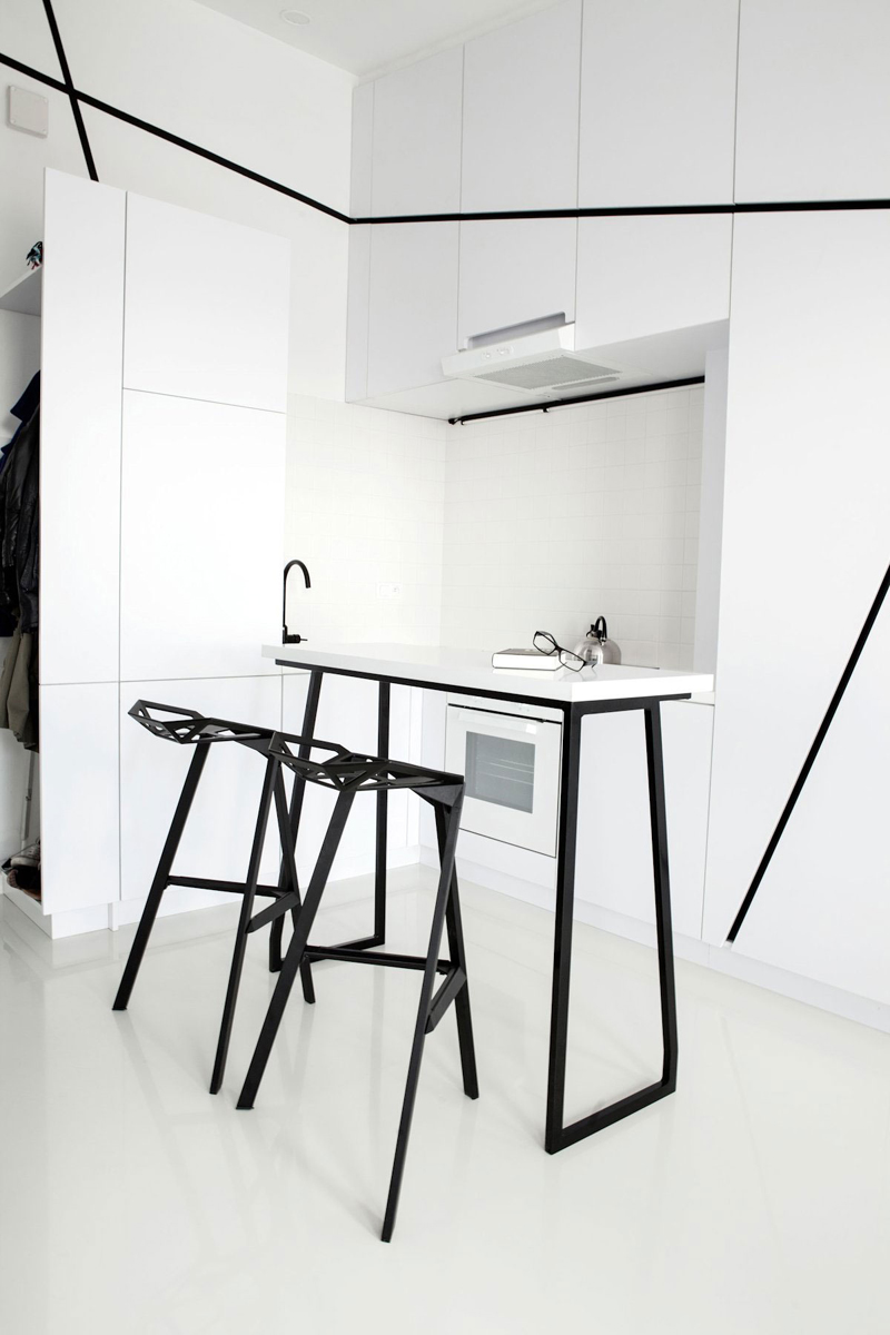 cozinha branca e preta pequena