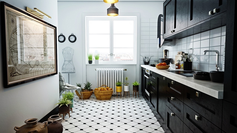 A sua cozinha pode ter até o piso preto e branco, para você aderir a este estilo, mas sem gastar demais, caso esteja fazendo a sua cozinha ou, já a reformando. Veja mais exemplos e ideias e repagine a sua cozinha.