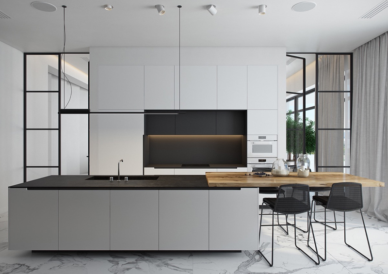 cozinha branca e preta moderna