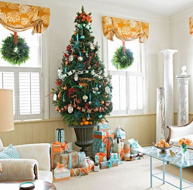 E outra alternativa para uma decoração de Natal aconchegante, mas sem as cores tradicionais da época natalina é investir em cores mais intensas e vibrantes, como o laranja, que vem de encontro com clima quente e tropical do Natal brasileiro. E para baratear a decoração, vale apostar em cortinas que você já possua e deixá-las com caimento diferenciado; em flores; objetos de decoração; e em papel de presente com a cor vibrante predominante.