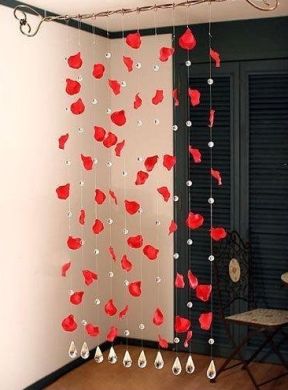 Para separar um ambiente de outro, caso você possua salas conjugadas, você pode fazer cortinas artesanais, que além de delimitarem os espaços com eficiência ainda garantem um charme a mais, principalmente se você apostar em elementos diferenciados e com temas específicos para confeccionar sua cortina, como o tema romântico, e optar por peças que produzam um som harmonioso quando bater o vento.