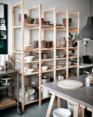 Independente do seu tipo de trabalho artesanal, se ele é mais delicado, como costura ou pintura ou mais rústico como a marcenaria, você deve apostar em estantes para acomodar todos os utensílios que você usa mais constantemente, deixando-os à vista, porém muito bem organizados.