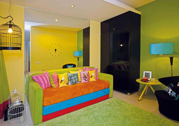 A decoração colorida para sala pequena está liberada para quem não se importa com regras de decoração e quer fugir delas.