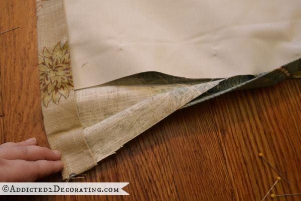 Em seguida, encaixe o tecido do forro no outro lado da sua cortina.