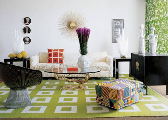 As formas geométricas podem estar presentes nos móveis (e tanto no formato quando na pintura ou estamparia), no papel de parede, nos vitrais da janela, nos tapetes, cortinas, almofadas, quadros, no formato das poltronas e até mesmo nos espelhos, que além de deixarem a decoração mais sofisticada e garantir um espaço para retoques na aparência, ainda criam ilusão de ambiente maior.