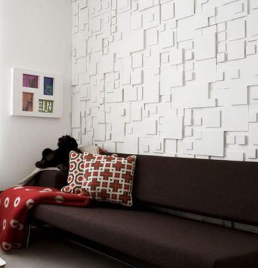 Se você quer fugir do convencional, pode fazer uma parede com textura com formas geométricas. E para potencializar o décor, invista em mais peças com formatos geométricos, como forros de almofada, quadros, cortinas ou tapetes.