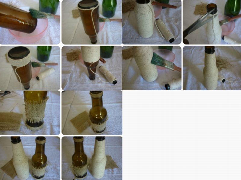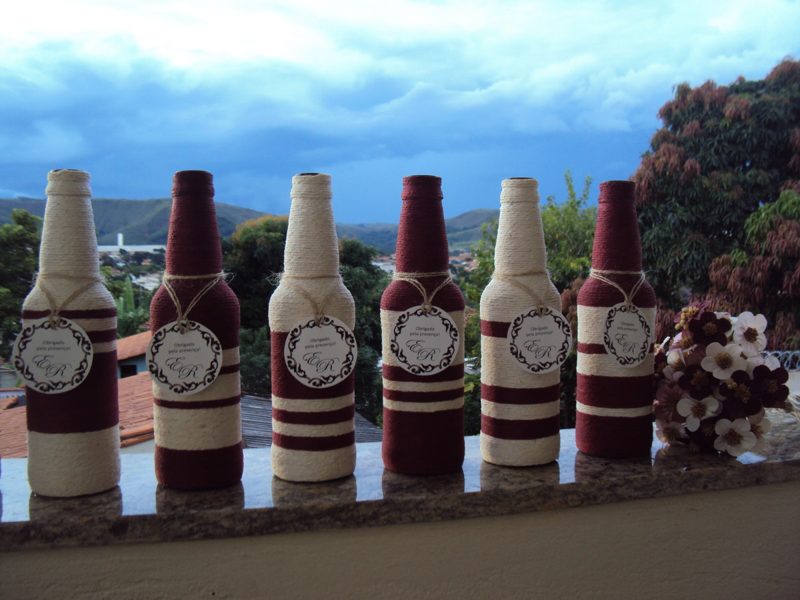 25 – Garrafa de cerveja decorada com barbante passo a passo