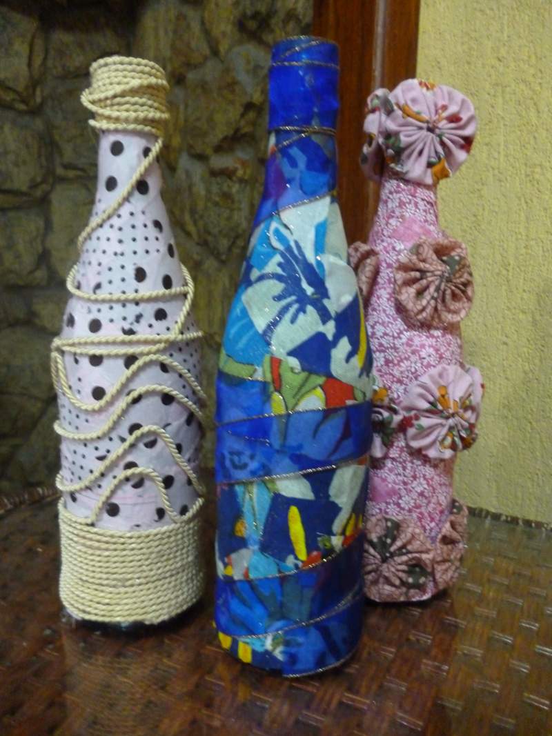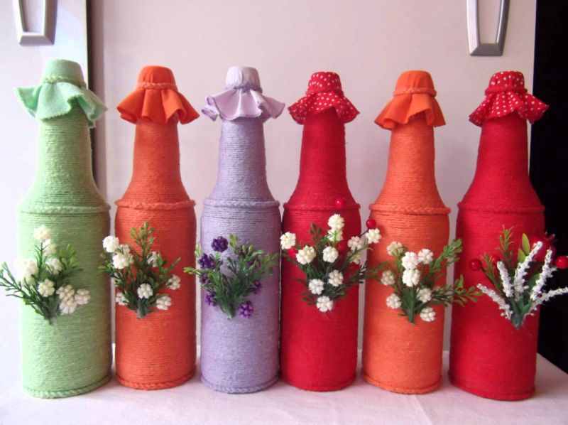 13 – Ideia para decorar garrafas de vidro com juta e lã