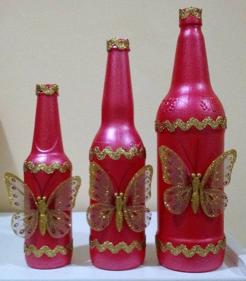 27 – Trio de garrafas para decoração na cor rosa